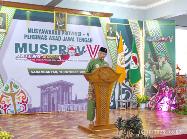 GDPURA JATENG | Karanganyar, 18 Oktober 2025 – Drs. H. Sutiyono kembali terpilih secara aklamasi sebagai Ketua Pengprov PERSINAS ASAD Jawa Tengah periode 2025–2030 dalam Musyawarah Provinsi (Musprov) ke-V yang digelar di Padepokan PERSINAS ASAD Pondok Pesantren Insan Qur’ani, Tawangmangu, Karanganyar.