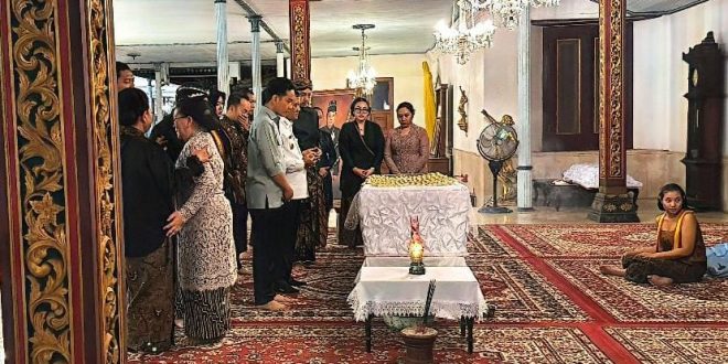 Para abdi dalem tampak berbaris rapi, menundukkan kepala ketika Wapres Gibran memasuki ruang utama tempat jenazah disemayamkan. Alunan gamelan pelan terdengar mengiringi prosesi doa bersama.