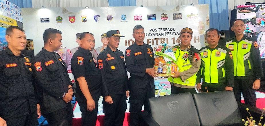 Selain melakukan pemantauan, Yusuf juga menyerahkan bingkisan kepada petugas sebagai bentuk apresiasi atas dedikasi mereka dalam menjaga keamanan selama Operasi Ketupat Candi 2026.